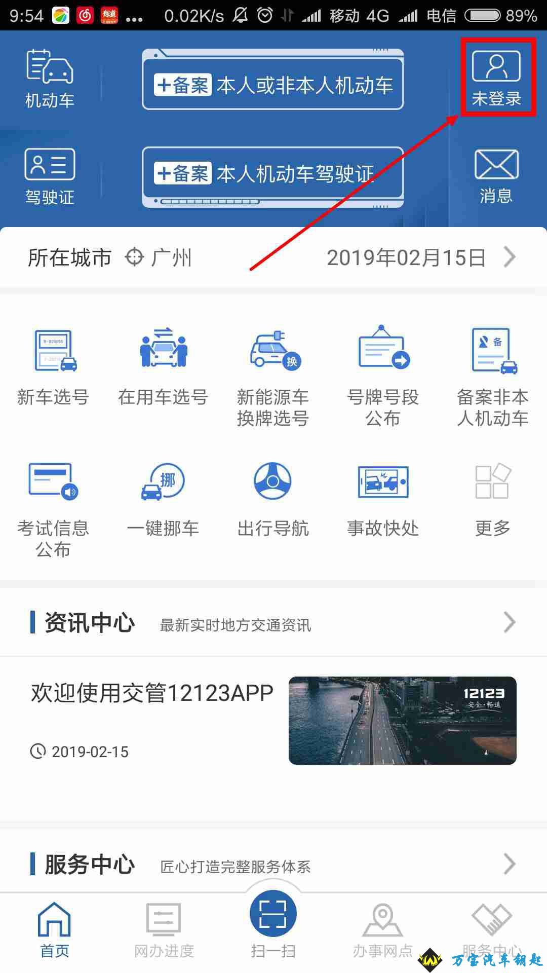 2、打开APP,并点击右上角登录。登陆的账号是身份证,密码如果忘记了就先找回密码。